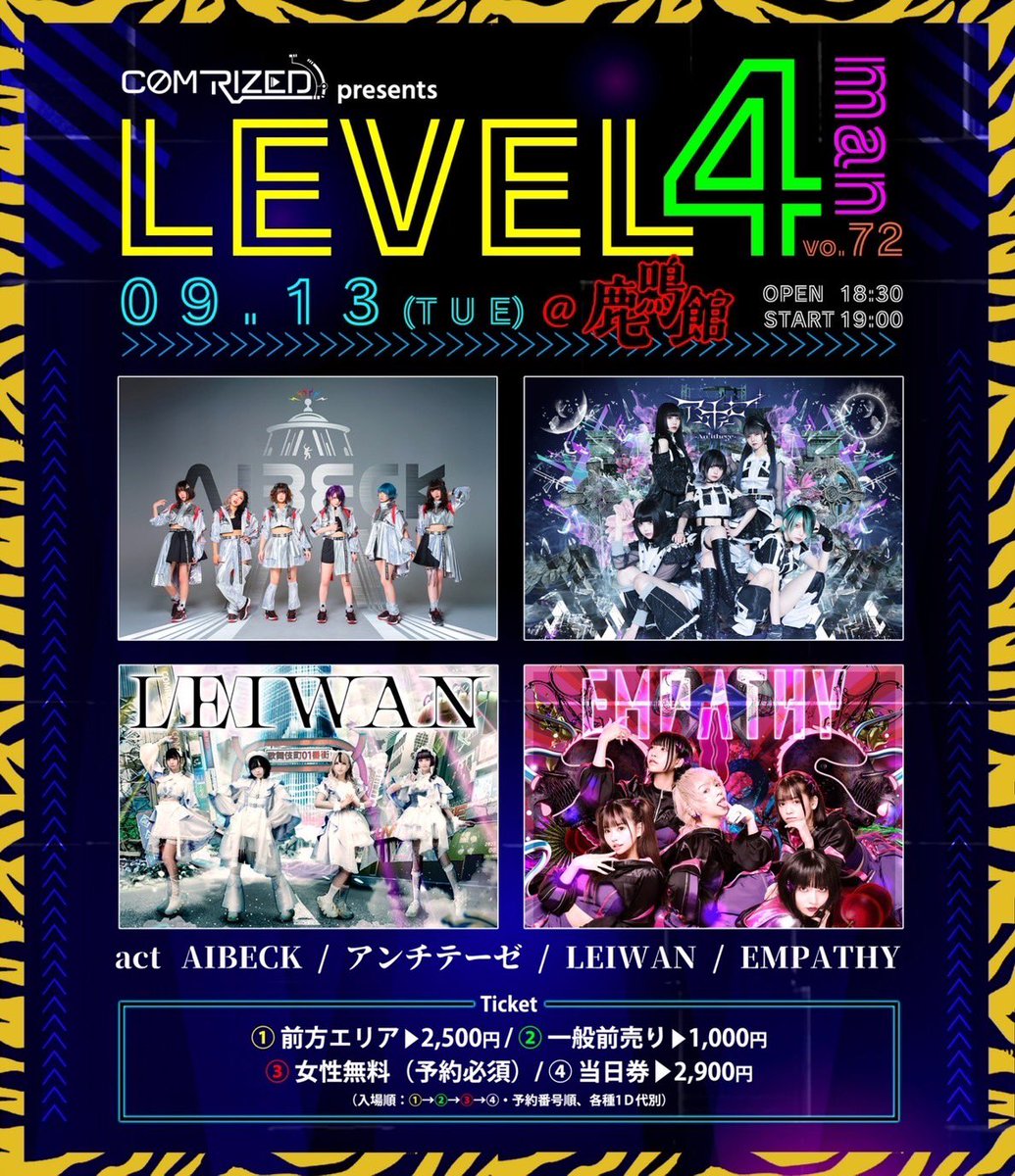 料金: 優先チケットS¥3,000+D / 一般A¥1,500+D / 当日¥2,000+D / 女性B¥500+D